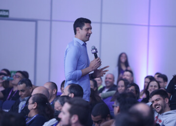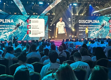 Presença marcante no palco, conexão com o público e um momento que inspira ação, reforça propósito e engaja a equipe.